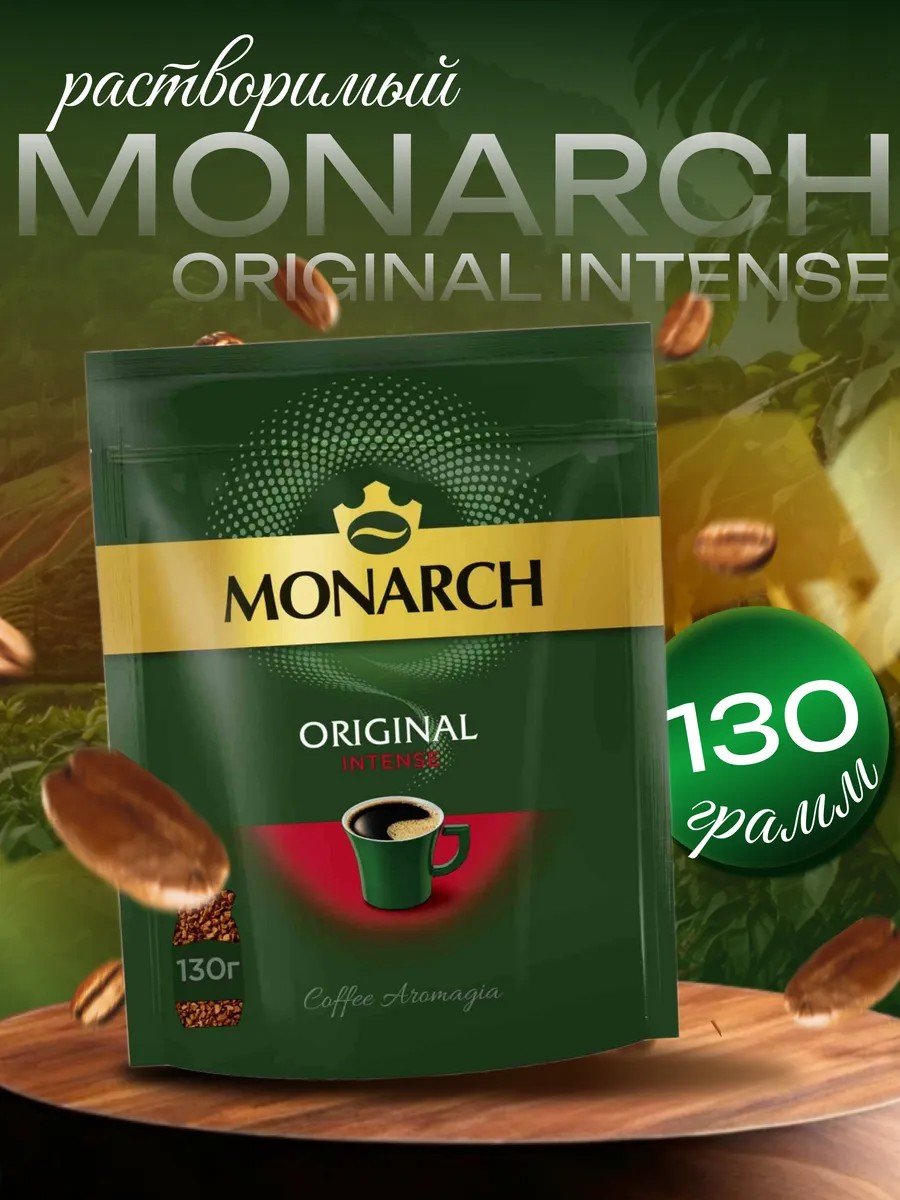 Кофе растворимый MONARCH Original Intense натуральный сублимированный, 130г. Богатый, насыщенный вкус и волшебная сила Аромагии остаются с вами в каждой чашке кофе Monarch! Мы сохраняем высокое качество и традиции производства, чтобы вы всегда могли наслаждаться любимым кофе. Кофе Monarch Original Intense – великолепный интенсивный вкус в каждой капле!