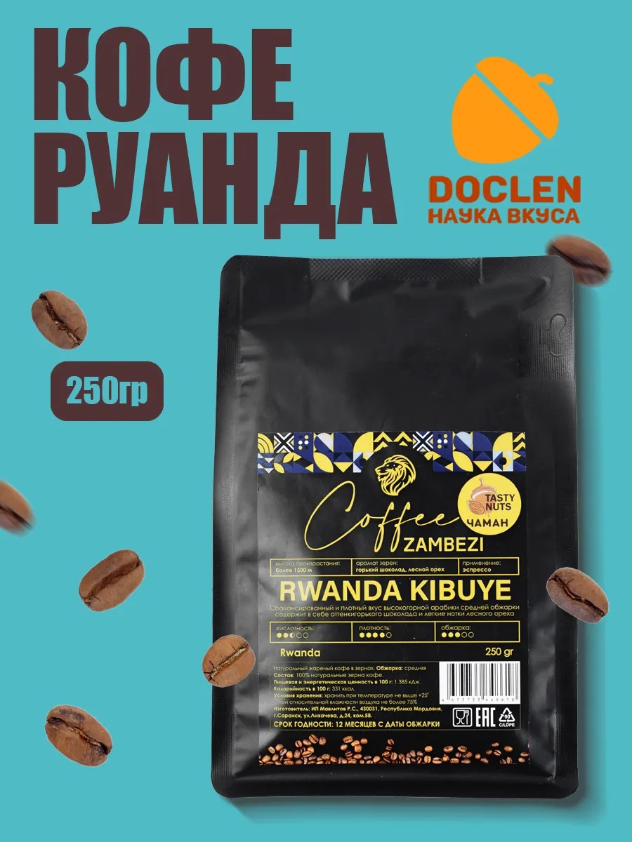 Natural freshly roasted whole bean coffee from Rwanda Kigali. Sweet coffee with notes of honey, cherry, and grapefruit. 100% Arabica, medium roast. This is a classic berry coffee from Rwanda, and the main flavor descriptor is typical of this country: cherry. This variety was blended from lots from three processing stations in different provinces of the country. Each region is ideal for coffee production, but the climate varies, which is why each lot has a distinct flavor. This is precisely why Rwanda Kigali is vibrant and very complex. This coffee is roasted for espresso and is also excellent for cappuccino, latte, and other coffee drinks. Recommended for preparation in professional and automatic coffee machines. Ground coffee reveals its flavor in espresso machines, automatic coffee machines, Turkish coffee pots, moka pots, and French presses. Whole bean coffee from a legendary producer is 100% original. Each pack has an individual QR code that allows you to verify the product's authenticity. Tasty means "delicious" when it comes to coffee! This product is for specialty coffee connoisseurs. Prepare coffee according to your favorite recipes! Start your morning with a cup of good, aromatic coffee! This coffee makes a great gift for holidays and anniversaries. Always perfectly roasted! The packaging with a degassing valve preserves the flavor and aroma of the coffee, and the zip-lock allows for convenient storage and use.