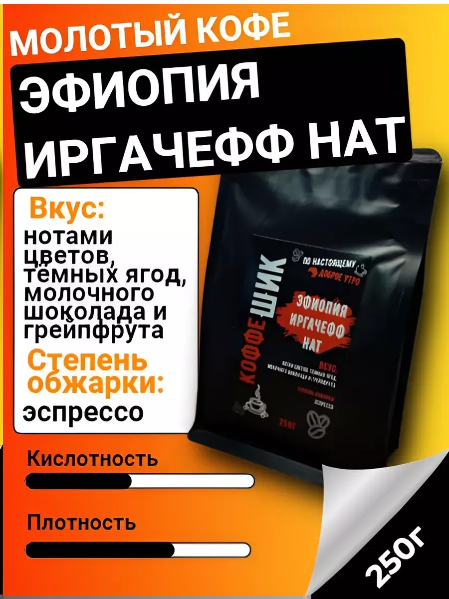 КоффеШИК Кофе молотый Эфиопия Иргачефф Нат 250гр