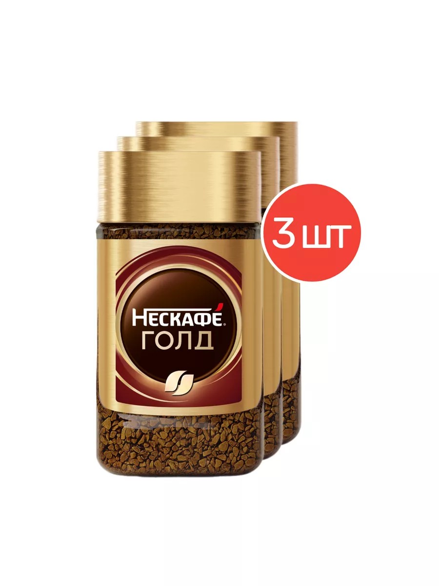 Кофе Nescafe Gold растворимый сублимированный с добавлением натурального жареного молотого в стекле 47,5 г набор 3 шт