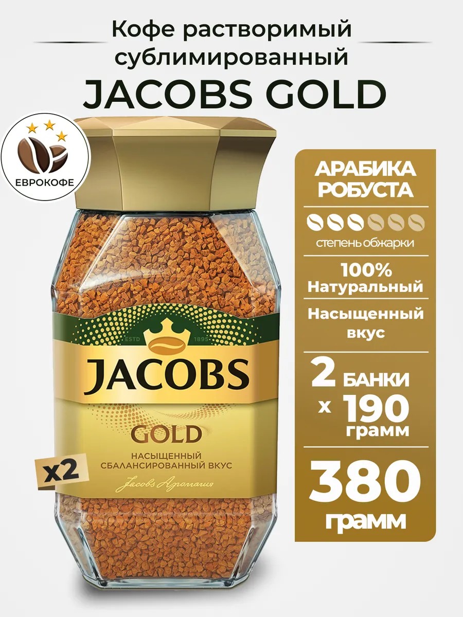 Jacobs Кофе растворимый Якобс Gold 190г. 2шт.