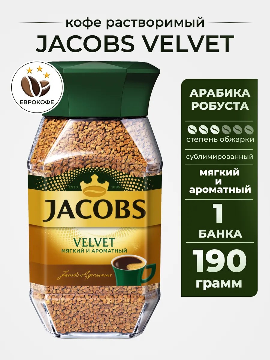 Кофе растворимый Jacobs Velvet 190 г в стеклянной банке — изысканный вкус с бархатным ароматом