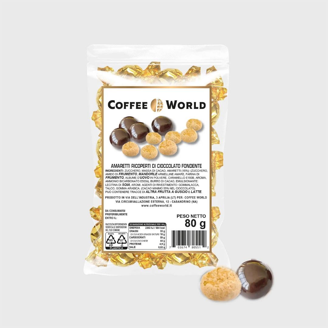 Ciocoworld - Amaretti doux enrobés de chocolat noir, petits chocolats en une seule portion Coffee World 480g (6 sachets de 80 g)
