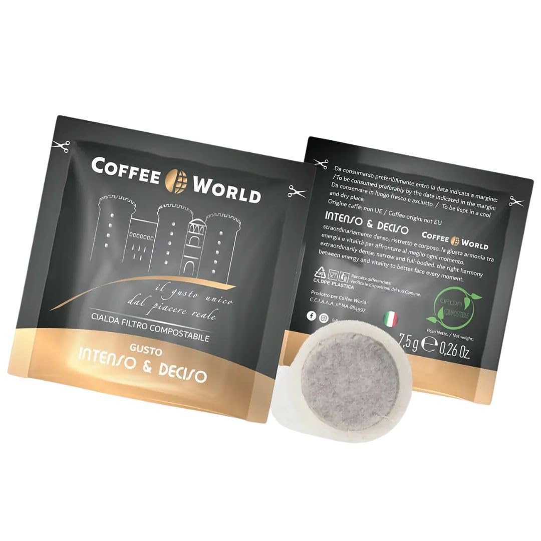 COFFEE WORLD, Lot de 100 dosettes goût intense et décisif, dosette filtre papier composable format ESE44 7,5 g