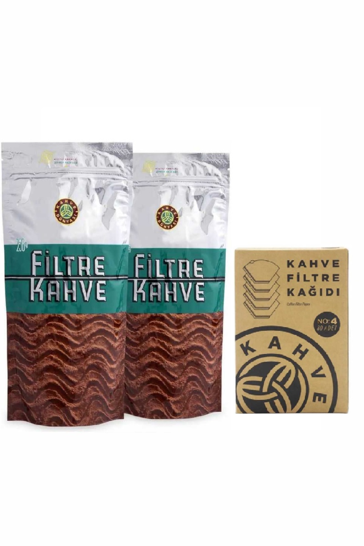 Coffee World Filter Coffee 250 gr 2 Pieces and Coffee World Filter Paper No: 4