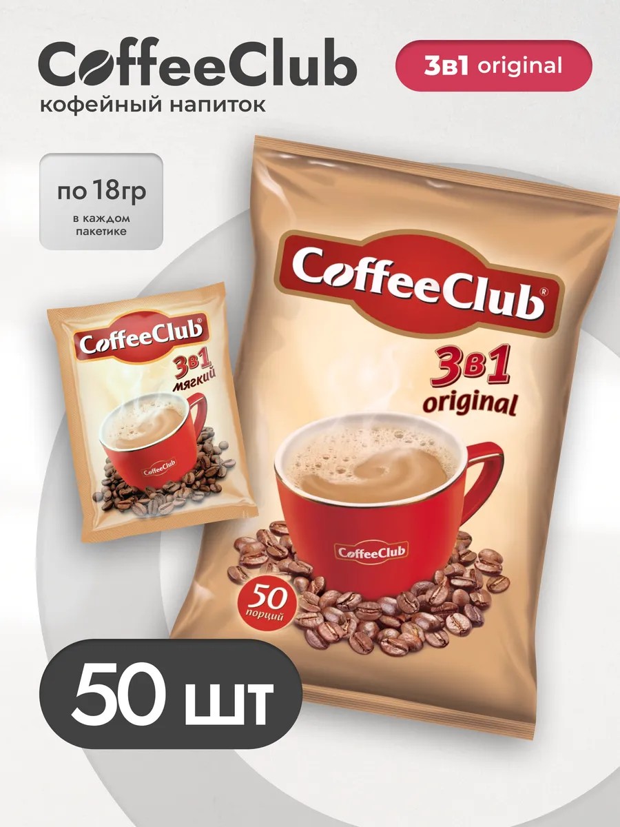 CoffeeCab Кофе растворимый 3 в 1 CoffeeClub Оригинал, 50пакетов по 18г