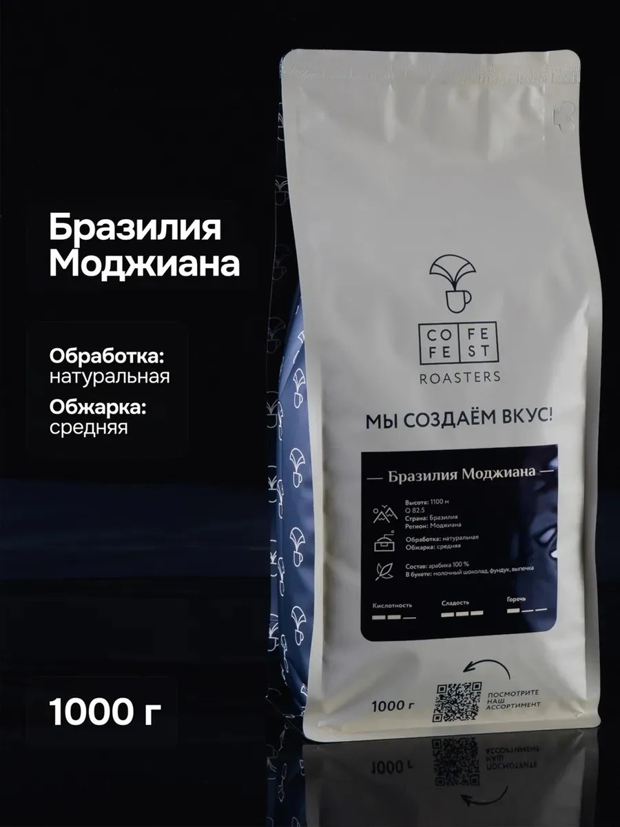 CofeFest Кофе в зернах 1 кг арабика 100% Бразилия Моджиана