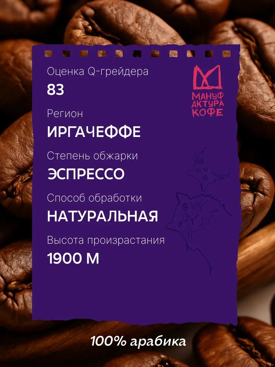 Не знали как лучше познакомиться с кофе из Эфиопии? Тогда начните с Эфиопия Иргачефф. Он очень хорошо раскрывается с первого глотка: много цитрусовых и послевкусие карамели. Вам представляется уникальная возможность насладиться натуральным зерновым кофе с нашей свежей обжаркой. Этот замечательный кофе высокого качества, является большим открытием для всех ценителей насыщенного вкуса и аромата настоящей 100% арабики. В упаковке 250 г кофе в зернах. Это кофе натуральной обработки, ферментация длится от 36 до 48 часов. Далее его сушат на африканских кроватях (процесс сушки длится от 12 до 15 дней в зависимости от погодных условий).В течение дня, чтобы процесс сушки проходил равномерно, кофе переворачивают несколько раз. В самые жаркие дневные часы (с 12 до 15 часов) и в ночное время продукт накрывают (чтобы защитить от солнца и дождя). Каждая партия нашего свежеобжаренного кофе тщательно отобрана и обжарена, что делает его идеальным для приготовления на традиционных и гейзерных эспрессо кофемашинах и под турку. Наслаждайтесь изысканным вкусом, которого нам удалось достичь благодаря нашему опыту и применению современных технологий обжарки. Эфиопия Иргачиффе отлично подойдет для приготовления множества кофейных напитков, от классического эспрессо до изысканного латте. Наш продукт идеально сбалансирован и обогащен множеством вкусовых аккордов, которые не оставят равнодушным даже самого привередливого кофемана. Упаковка в 250 грамм позволит вам надолго насладиться прекрасным кофе, сохраняя его насыщенность и аромат свежей обжарки. Вы можете быть уверены в качестве, поскольку каждый этап производства проходит тщательный контроль. С нашей свежей обжаркой у вас дома будут доступны кофейные удовольствия на уровне топовых кофеен. Это идеальный вариант подарка даже для самых привередливых кофелюбителей. Оцените мастерство наших обжарщиков и предоставьте возможность этому зерновому кофе перенести вас в сердце Эфиопии, к ее солнечным плантациям и непревзойденной кофейной культуре. Зерновой кофе от Мануфактуры - это ваша возможность насладиться бодрящим и освежающим напитком, наполненным энергией и жизнью, с каждым глотком.