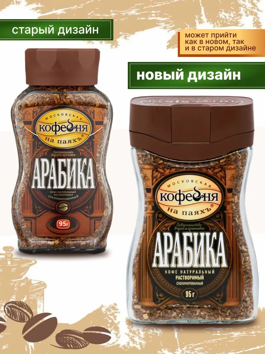Может прийти как в старом так и в новом дизайне! Кофе МОСКОВСКАЯ КОФЕЙНЯ НА ПАЯХЪ 'Арабика' приготовлен исключительно из премиальных сортов Арабики. Богатый аромат, насыщенный мягкий вкус с приятной кислинкой и продолжительное послевкусие. Кофейные зёрна, собранные вручную на склонах колумбийских гор, и особая степень деликатной обжарки. Так рождается бодрящий напиток с богатым вкусом и ароматом. Ранним утром или посреди дня, в путешествии или дома – приготовьте «Арабику», и время замедлит ход, для того чтобы вы насладились моментом и чашечкой любимого напитка. Молотая, в зёрнах или растворимая – какую бы «Арабику» Вы ни выбрали, она будет исключительно хороша. Основные характеристики: - состав кофе - Арабика; - степень обжарки - средняя; - содержание арабики,% - 100; - технология производства - сублимированный.