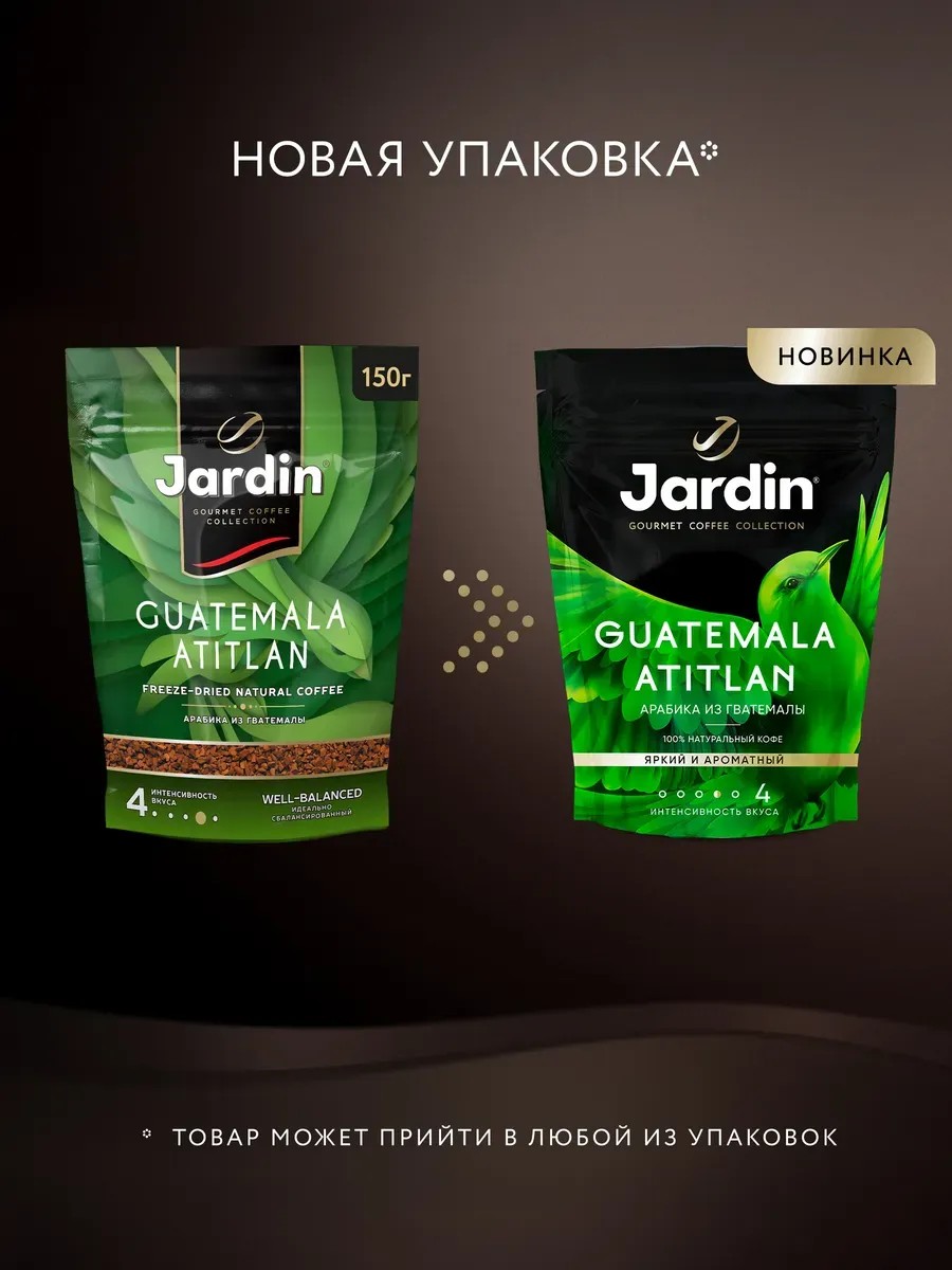 Натуральный растворимый кофе Jardin Guatemala Atitlan изготовленный из особого сорта кофейных зерен из Гватемалы придающих напитку глубокий вкус со сладкими нотами с фруктовыми оттенками сбалансированный и ровный по вкусу. Рецепт приготовления положить в чашку одну две чайных ложки кофе и добавить горячую но не кипящую воду. Плотная упаковка с застежкой молнией надежно сохраняет богатство вкуса и аромата.