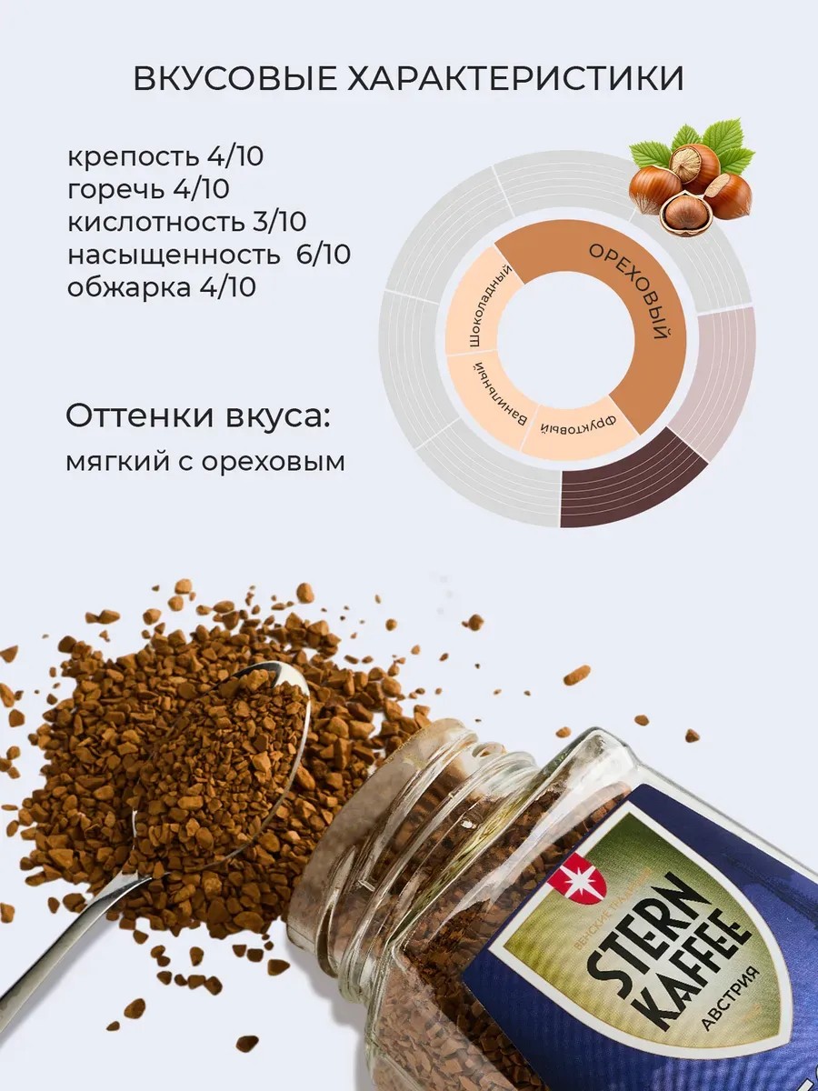 Natural instant decaffeinated coffee with added natural roasted ground coffee, Dekaf Doppelt Kaffee, is the best solution for those who love coffee but don't tolerate caffeine well. Decaffeinated coffee, thanks to a special processing process, retains its aroma and flavor, and the addition of ground coffee creates a more vibrant and unforgettable taste. This coffee is for those who care about their health! The original tin for instant coffee makes it a gift and also protects it from moisture and foreign odors, preserving its natural aroma and flavor for a long time. All STERNKAFFEE products contain no artificial flavors. This product has a traditional coffee taste with a moderate acidity, typical of Colombian Arabica. We have been producing coffee since 1935, exclusively for Viennese coffee houses. Beautiful packaging doesn't matter, only what's inside. Try the contents, and like the Viennese, you will drink only this drink for the next 90 years. Give your loved ones STERNKAFFEE for any holiday and any occasion, because coffee is the best gift of all time!