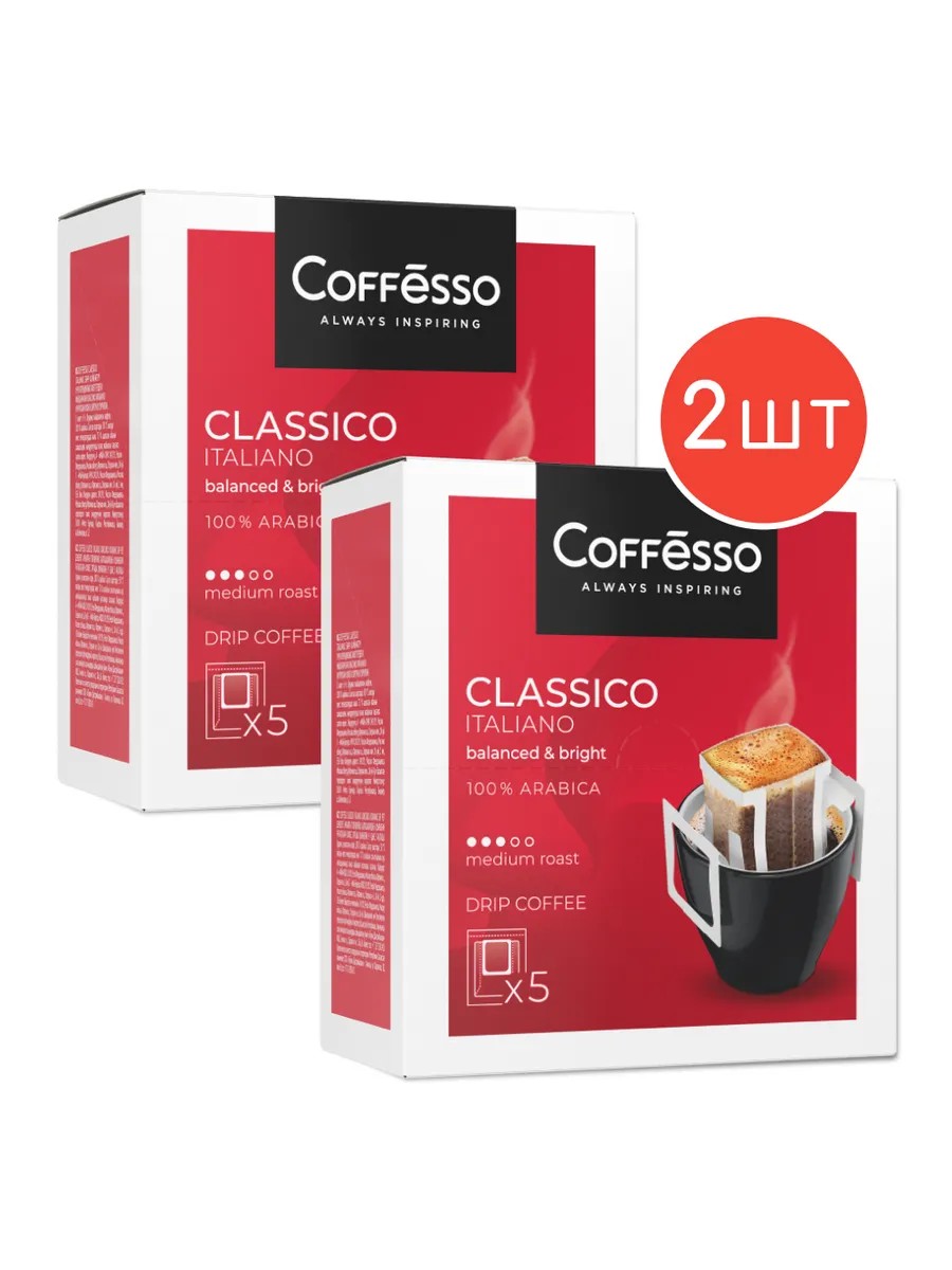 COFFESSO Кофе молотый Coffesso Classico Italiano дрип пакет, 5шт 2уп