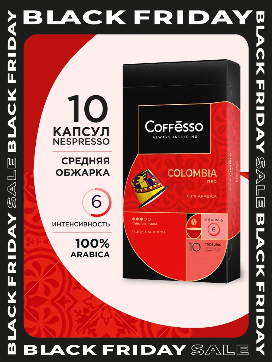 Попробуйте кофе в капсулах для кофемашины Colombia от Coffesso и откройте для себя новый уровень вкуса и аромата. Это не просто кофе, это ваш личный источник вдохновения и удовольствия. Удобство приготовления чашки кофе, разнообразие блендов, интенсивности и стран произрастания, премиальная арабика в составе. Аромат и вкус кофе сохраняются благодаря надежной упаковке. Подходит для приготовления в капсульной кофемашине Nespresso. Рекомендации по приготовлению ищите на упаковке. Coffesso — это импульс, открывающий тебя новому в жизни, что приносит удовольствие, и делает её многогранной. Coffesso помогает смотреть на мир с широко открытыми глазами, впускать новое в свою жизнь и наслаждаться простыми вещами. Призывает выбирать удовольствие не только в кофе, но и в жизни. Жизнь в удовольствие реальна! COFFESSO - ALWAYS INSPIRING