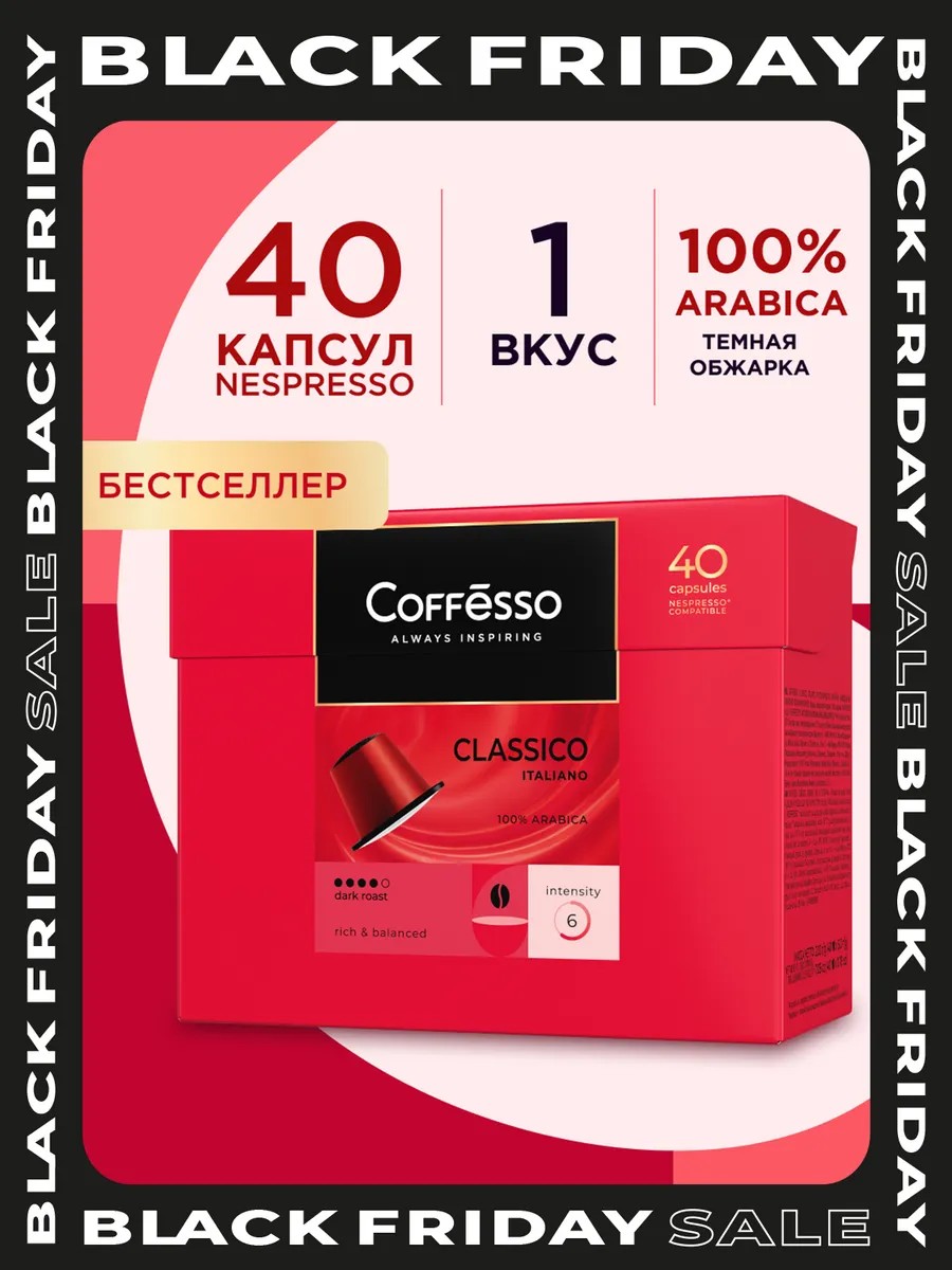 Насладитесь искусством вкуса с капсульным кофе от Coffesso - итальянского бренда, где кофе - это больше, чем просто напиток. Это произведение искусства, которое создается с любовью и страстью кофейными мастерами, виртуозами своего дела, признанными на международном уровне. Уникальный бленд Classico Italiano является гармоничным сочетанием отборной арабики из Южной Америки и Восточной Африки. Этот темно обжаренный, превосходно сбалансированный кофе, состоящий из 100% арабики, отличается мягкой текстурой и ярким ароматом с фруктовыми нотами, что обеспечивает исключительное наслаждение для любителей кофе.Удобство использования капсул для кофемашины Nespresso, сочетающееся с великолепным вкусом и ароматом этого классического бленда, обеспечивает идеальное начало дня или замечательный перерыв в любое время. В каждой капсуле для кофе упаковано 5 грамм самого лучшего кофе, что позволяет вам быстро и легко приготовить чашку совершенного напитка. Рекомендованный Джакомо Ваннелли, победителем Чемпионата барист в Италии 2019 года, этот кофе вызывает глубокую эмоцию, заставляя вас ощутить всю глубину и разнообразие его вкусовой палитры. Вкус готового напитка зависит не только от качества зерна, степени обжарки и помола, но и от ваших персональных предпочтений и даже настроения. Coffesso занимает особое место в мире кофе. Наша команда экспертов, включая Джакомо Ваннелли, работала над созданием этого уникального бренда, объединяя традиции и новаторские технологии. Каждая чашка кофе классико становится маленьким произведением искусства, которое вдохновляет и наполняет вас энергией.Большая упаковка капсул 40 шт по 5 гр, может стать прекрасным подарком на День рождения или любой другой праздник для ваших близких: мамы, подруги или коллеги. Это не просто подарок, это вкусовое путешествие в мир кофейного искусства, великолепный способ поделиться радостью и удовольствием от наслаждения идеальной чашкой кофе. Коффессо – это место, где встречаются вкус и искусство, преображая привычный ритуал кофепития в настоящий эстетический праздник. Окунитесь в мир истинного кофейного искусства с Coffesso и позвольте нашему кофе раскрыть все грани вашего вкуса.