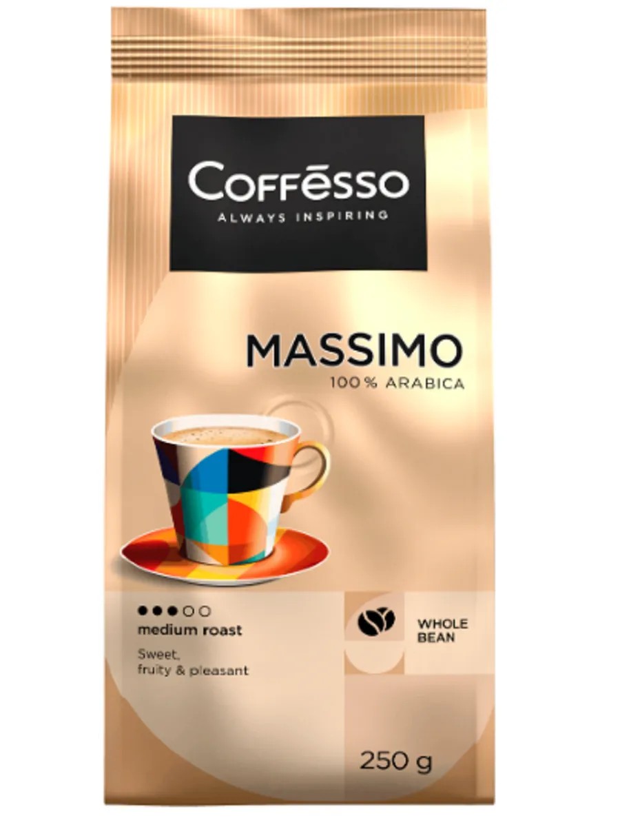 COFFESSO Кофе зерновой Massimo, 250 г. Coffesso — бренд, который родился из любви к кофе и желания показать, что каждое мгновение жизни может стать источником радости и удовольствия.