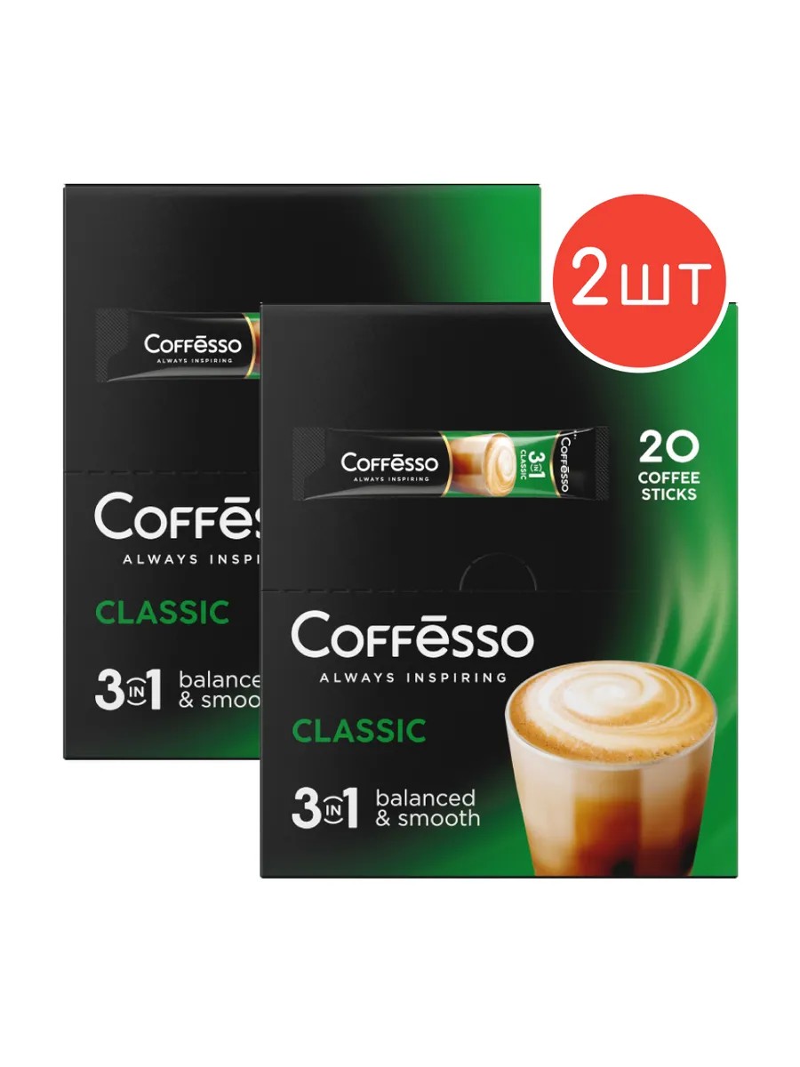 COFFESSO Кофе растворимый Coffesso Classic 15гх20 стиков 2шт