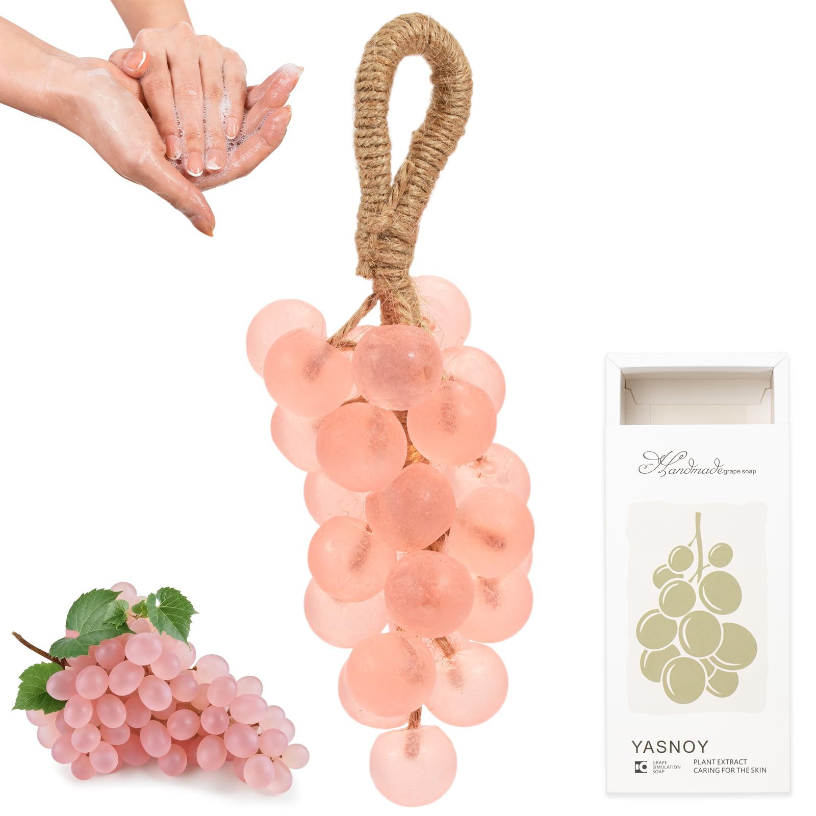 Coffret Cadeau de Savon de Raisin Cristallin Artisanal avec Corde, Savon Artisanal Transparent pour Lavage des Mains et Bain, Fabriqué par Méthode à Froid (1, Rose) 1 Rose