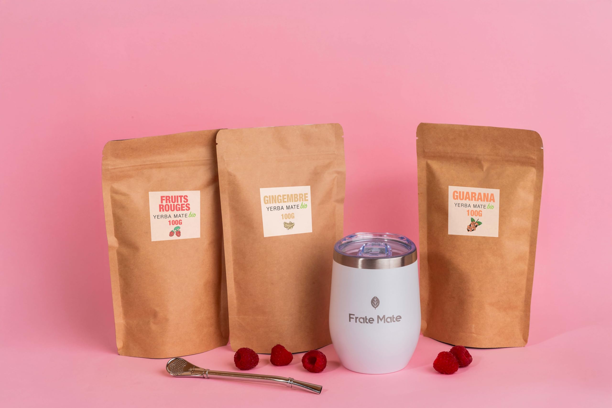 Treat yourself to a burst of freshness with the Fraté Maté Fruity Discovery Set . A selection of three fruity and thirst-quenching maté blends to enjoy hot or cold: 100g of Red Fruits Maté: a blend of raspberry, hibiscus, and rosehip. 100g of Guarana Maté: fruity and slightly herbaceous flavor. 100g of Ginger Maté: flavored with ginger and lemongrass. This set also contains the essential accessories for a complete experience: A white Fraté Maté gourd a stainless steel bombilla (metal straw). A fresh and smooth taste without bitterness: perfect for beginners and connoisseurs alike. A natural energy boost, combining the gentle caffeine of maté with the antioxidants of tea. Certified organic by Ecocert, these yerba mate teas are grown in Brazil and packaged in France, in a workshop that promotes the integration of people with disabilities. Dust-free, whole leaves: premium quality for a clear and flavorful infusion. Infuse for 5 minutes, savor the moment. Ingredients: Red Fruits Yerba Mate , raspberry , hibiscus and rosehip Guarana Yerba Mate : yerba mate , guarana Ginger Yerba Mate : yerba mate , ginger , lemongrass Ingredients from organic farming. P.when('A').execute(function(A) { A.on('a:expander:toggle_description:toggle:collapse', function(data) { window.scroll(0, data.expander. expander[0].offsetTop-100) }) }) Directions: Infuse for 5 minutes, savor the moment. Safety Warning: Contains caffeine. Not recommended for children or pregnant women. See moreResponsive customer service 30-day guarantee: satisfaction guaranteed or your money back, no questions asked. Packaged in France: in a sheltered workshop (ESAT), promoting social inclusion. ? Perfect as a cold infusion in summer: refreshing and delicious. Premium quality, dust-free: whole leaves for a pure and enjoyable infusion. Energy Detox: Yerba mate is a natural source of caffeine and antioxidants. Complete Kit: Includes 300g of yerba mate, a gourd, and a bombilla – ready to use! 3 Organic Fruity Yerba Mates: Red Berries, Guarana Ginger – enjoy iced or hot.Description du produit Offrez-vous une explosion de fraîcheur avec le Coffret Découverte Maté Fruité Fraté Maté . Une sélection de trois matés fruités et désaltérants à savourer froids ou chauds : 100g de Maté Fruits Rouges : un mélange de framboise, hibiscus et églantier. 100g de Maté Guarana : saveur fruitée et légèrement herbacée. 100g de Maté Gingembre : parfumée au gingembre et à la citronnelle. Ce coffret contient aussi les accessoires indispensables pour une expérience complète : Une calebasse Fraté Maté blanche une bombilla en inox. Un goût frais et doux sans amertume : parfait pour les débutants comme pour les connaisseurs. Un effet coup de boost naturel, combinant la caféine douce du maté avec les antioxydants du thé. Issu de l'agriculture biologique certifiée Ecocert, ces matés sont cultivés au Brésil et conditionnés en France, dans un atelier favorisant l'insertion de personnes en situation de handicap. Zéro poussière, feuilles entières : une qualité premium pour une infusion claire et savoureuse. Infusez 5 minutes, savourez l'instant. Ingrédients Maté Fruits Rouges : yerba maté , framboise , hibiscus et églantier Maté Guarana : yerba maté , guarana Maté Gingembre : yerba maté , gingembre , citronnelle ingrédients issus de l'agriculture biologique P.when('A').execute(function(A) { A.on('a:expander:toggle_description:toggle:collapse', function(data) { window.scroll(0, data.expander. expander[0].offsetTop-100) }) }) Mode d'emploi Infuser pendant 5 minutes, savourez l'instant. Avertissement De Sûreté Contient de la caféine. Ne pas recommander aux enfants ou aux femmes enceintes. Voir plusService client réactif garantie 30 jours : satisfait ou remboursé, sans conditions. Conditionné en France : dans un ESAT, favorisant l'inclusion sociale. ? Parfait en infusion froide l'été : désaltérant et savoureux. Qualité premium, 0 poussière : feuilles entières pour une infusion pure et agréable. Énergie Détox : Le maté est une source naturelle de caféine et d'antioxydants. Kit Complet : Comprend 300g de maté, une calebasse et une bombilla – prêt à l'emploi !. 3 Matés Fruités Bio : Fruits Rouges, Guarana Gingembre – à savourer glacés ou chauds.Coffret Découverte Maté Fruité – 3 Matés Fruités Bio (Fruits Rouges, Guarana Gingembre) Calebasse Blanche Bombilla Yerba Maté Bio à Infuser Froid ou Chaud Idée Cadeau Maté Énergie Détox