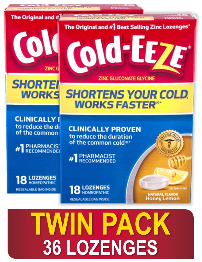 COLD-EEZE: We offer cold shortening lozenges, and zinc Plus products that can shorten your cold and deliver additional benefits such as immune support and cold flu symptom relief . PHARMACIST RECOMMENDED: Our homeopathic remedy is made with a distinct zinc gluconate formula. Zinc gluconate is the active ingredient in Cold-EEZE, the 1 Pharmacist Recommended zinc lozenge brand. SYMPTOM RELIEF: Cold-shortening Cold-EEZE helps reduce the severity of cold symptoms including cough, sore throat, nasal congestion, post nasal drip and hoarseness. SHORTEN YOUR COLD: Cold-EEZE can shorten your cold by 42 when taken at the first sign of symptoms and used as directed. ORIGINAL ZINC LOZENGE: Take Cold-EEZE Cold Remedy Honey Lemon Flavor zinc lozenges when the first symptoms of a cold start to appear, such as scratchy or sore throat, coughing stuffiness.