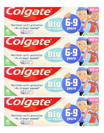 EXP 08 2025. Renforce l'émail, ce dentifrice avec la technologie de changement de couleur aide à prévenir les caries, rafraîchit l'haleine et renforce l'émail pour des super sourires. Ce lot de 4 paquets comprend du dentifrice Colgate Smiles 6 ans – 50 ml, spécialement conçu pour les besoins de soins dentaires des enfants.