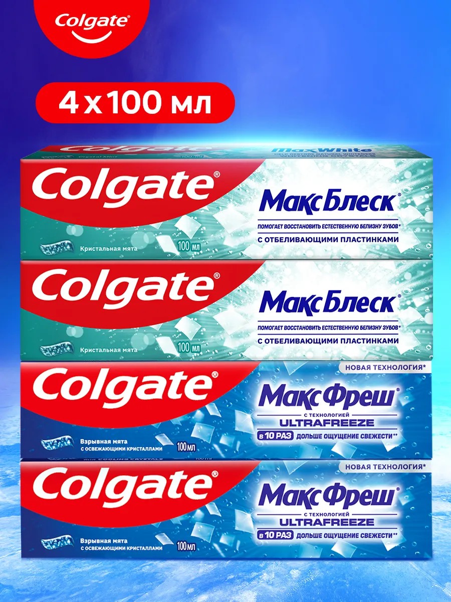 Colgate Зубные пасты Кристальная и Взрывная мята 4шт