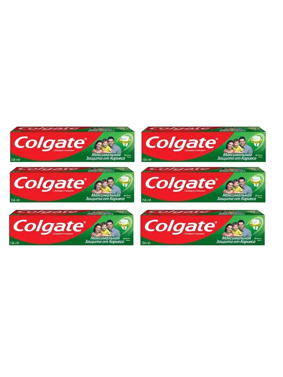 COLGATE Зубная паста, Максимальная защита от Кариеса Двойная мята 100мл, набор 6 штКариес чаще всего возникает в труднодоступных для чистки местах полости рта. Зубная паста Colgate Максимальная Защита от кариеса с жидким кальцием и фтором поможет вам справиться с этой проблемой. Уникальная формула укрепляет эмаль зубов и защищает зубы со всех сторон, проникая даже в труднодоступные места полости рта. Мягкий мятный вкус Colgate Максимальная Защита от кариеса Свежая Мята надолго оставит ощущение свежести после чистки. Подходит для ежедневного длительного использования всей семьей.