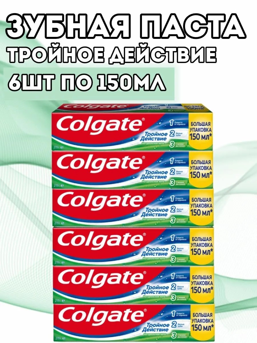 Зубная паста Colgate Тройное действие Натуральная мята комплексная 150мл 6шт. Бережно удаляет потемнения с поверхности зубов, восстанавливая естественную белизну зубов. Укрепляет зубы и защищает от кариеса. Обладает отличным свежим вкусом. Со временем эмаль теряет свою естественную белизну. Зубная паста Colgate удаляет потемнения с поверхности зубов, восстанавливая их естественную белизну. Благодаря этому вы можете каждый день радовать себя и своих близких ослепительной улыбкой. Зубная паста Colgate отлично справляется с кариесом и защищает от зубного камня. Подходит для чувствительных зубов. Большая упаковка по выгодной цене! Укрепляющая паста восстанавливает зубную эмаль, устраняет микротрещины. Отбеливающая многофункциональная с эффективной формулой обладает антибактериальным и противовоспалительным и мягким лечебным действием. Заботится о здоровье Ваших зубов и десен.