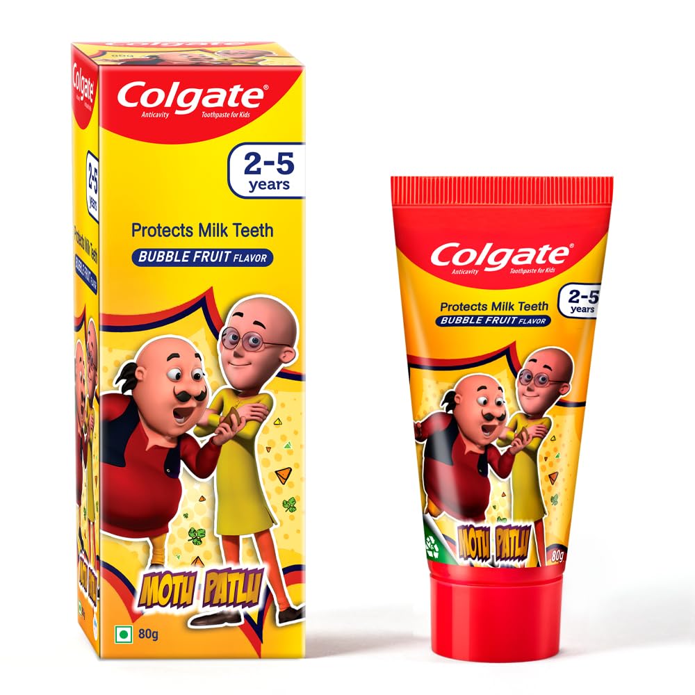 Colgate Kids Toothpaste for 2-5 Years - 80Gm Tooth Paste with 50% Lesser Abrasive Formula for Protecting Against Cavities (Strawberry Flavour) (Bubblefruit Flavour) | Anti-Cavity(2.8 Ounce)