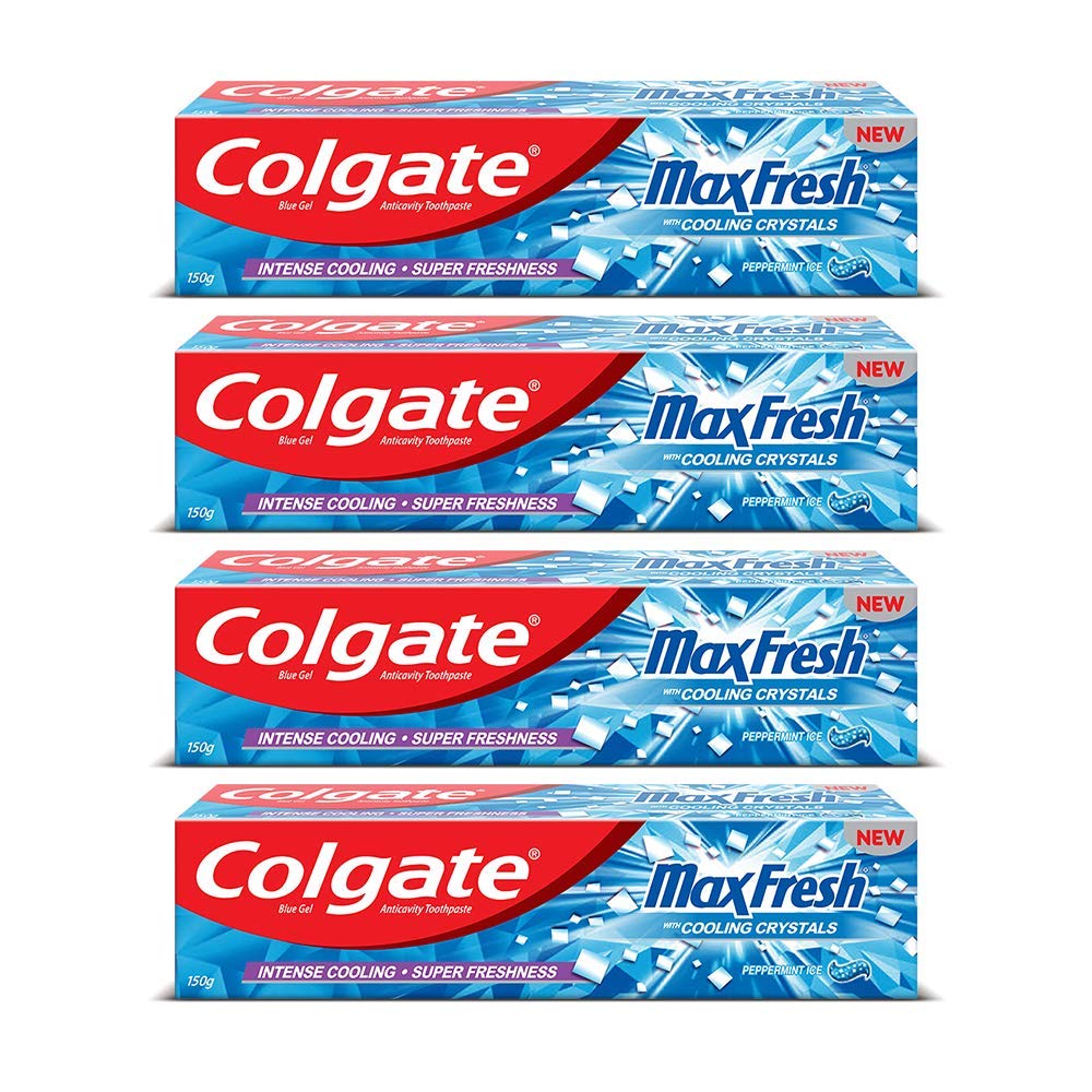Colgate MaxFresh Toothpaste Blue Gel Paste with Menthol for Super Fresh Breath 600g 150g X 4 (Peppermint Ice)