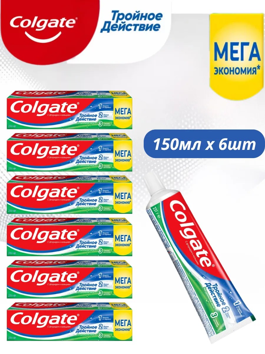 Зубная паста Colgate Тройное действие, 150 мл 6шт