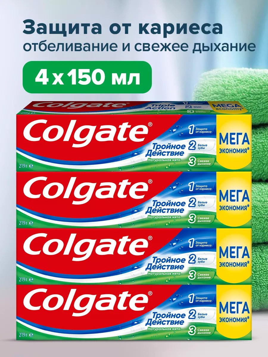 Colgate Зубная паста Тройное действие Натуральная мята 150мл 4шт