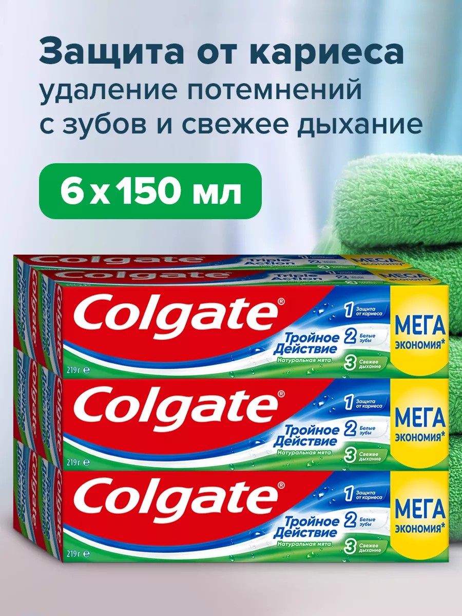 Colgate Зубная паста Тройное действие Натуральная мята 150мл 6шт