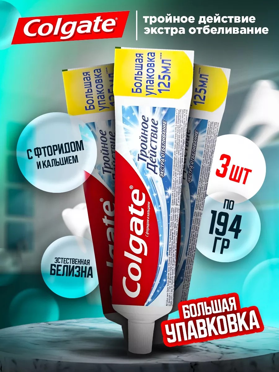 Комплектациязубная паста Колгейт тройное действие экстра отбеливание 125мл.-3шт