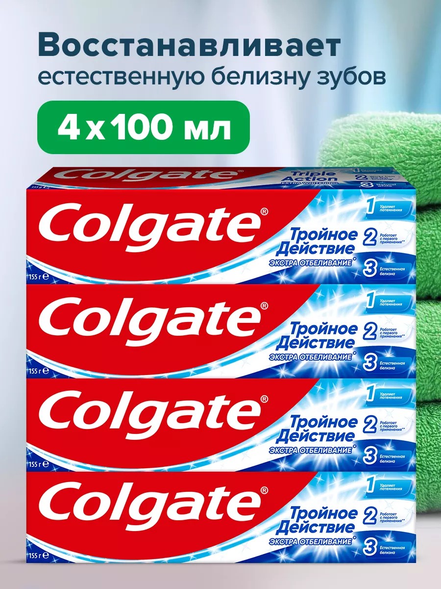 Colgate Зубная паста Тройное действие экстра отбеливание 100мл 4шт