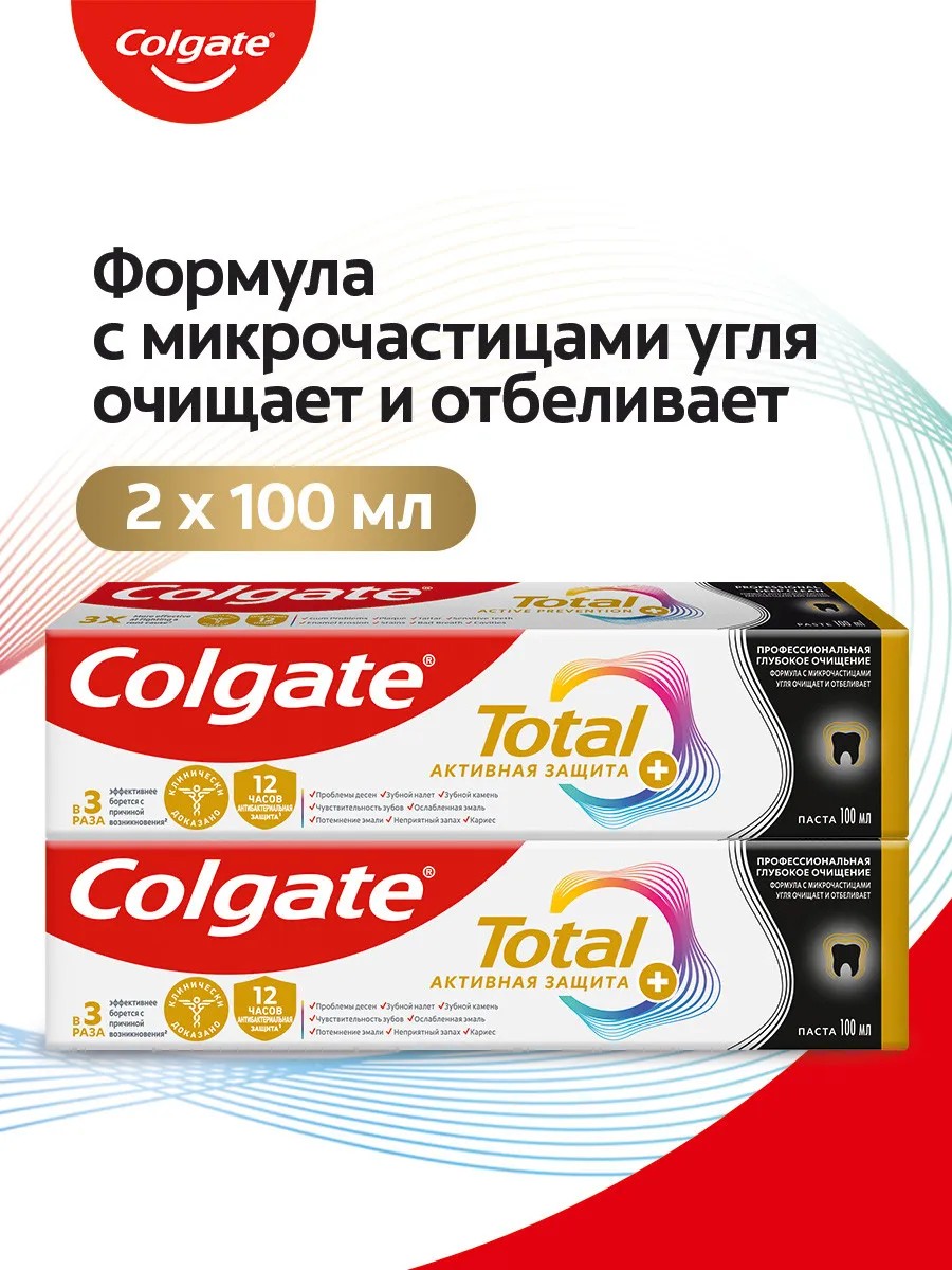 Клинически доказано: Усовершенствованная формула зубной пасты Colgate Total Активная Защита+ Профессиональная Глубокое Очищение имеет формулу с микрочастицами угля для очищения и отбеливания и в 3 раза эффективнее борется с причиной возникновения² основных проблем полости рта.