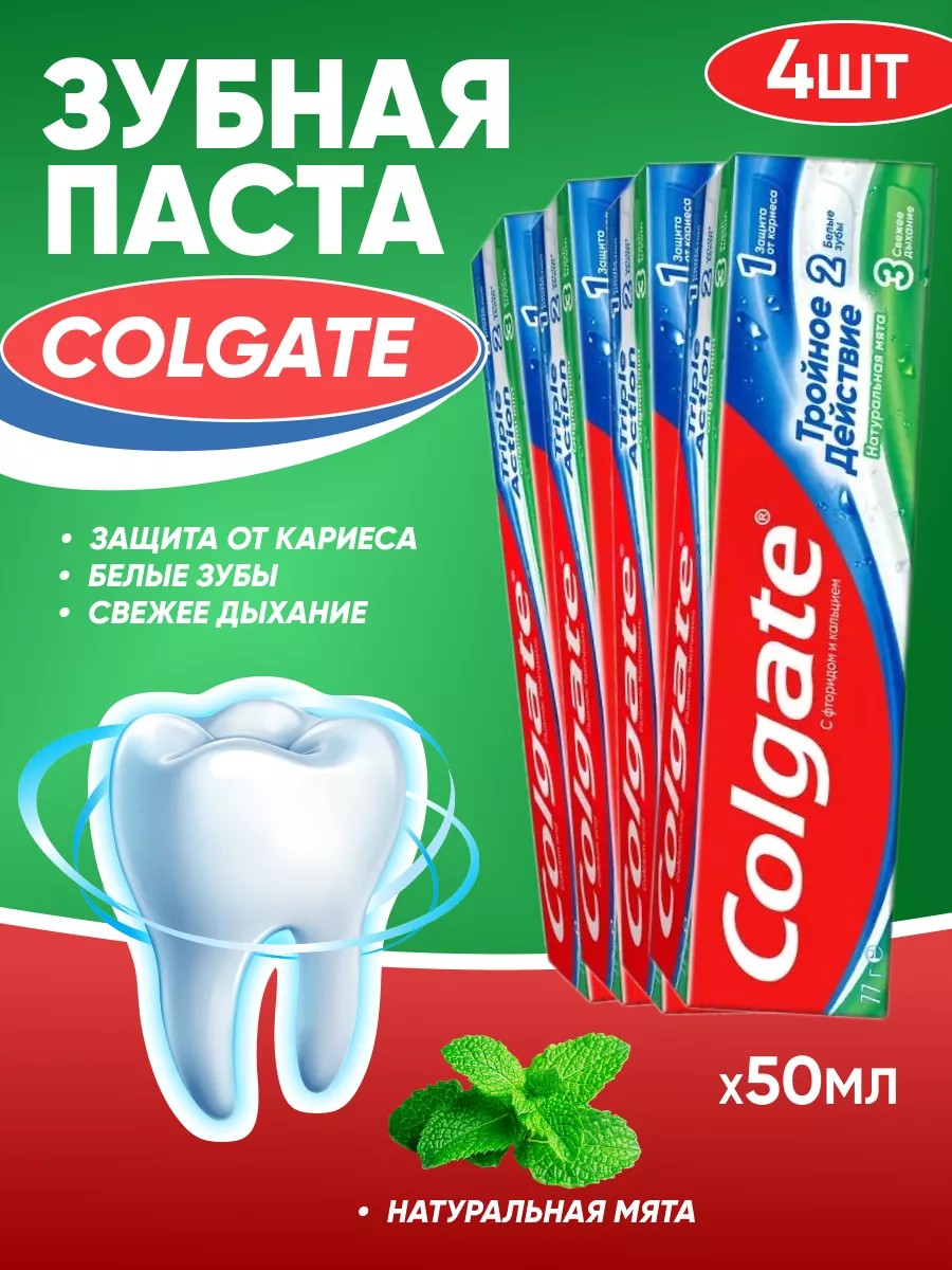 В нашем магазине можно купить наборы пасты Колгейт Тройное действие 50 мл по 2-6 штук.