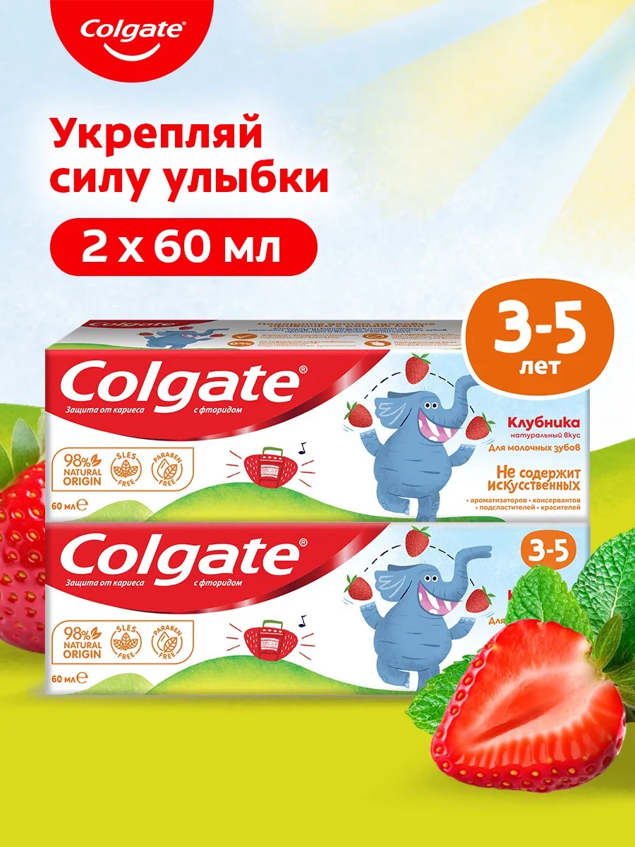 Colgate Зубная паста Детская клубника с фтором 3-5лет 60мл 2шт