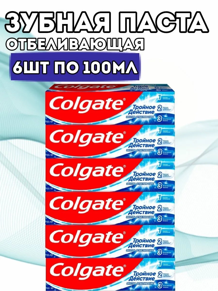 При регулярном использовании, зубы становятся белее, а дыхание свежим. Полирующая зубная паста Colgate Тройное действие экстра отбеливание подарит вашей улыбке здоровую белизну и сияние. Она эффективно удаляет налет и потемнения с эмали, не провоцируя усиление чувствительности зубов. Экстра отбеливающая паста для зубов Colgate с полирующими микрочастицами обеспечивает естественную белизну ваших зубов уже с первого применения. Также содержит кальций, который способствует глубокому очищению эмали и аргинин, который активно защищает зубы от кариеса. Используйте зубную пасту Colgate Тройное Действие Экстра Отбеливание для защиты от кариеса всей семьи. Паста подходит для повседневного ухода за полостью рта. Она надолго освежает дыхание, защищает от кариеса в течение дня, поддерживает здоровую микрофлору и нормальный уровень pH. Способ применения: Зубную пасту рекомендуется использовать утром и вечером. Пасту наносят на щетку и чистят зубы в течение 3-5 минут.