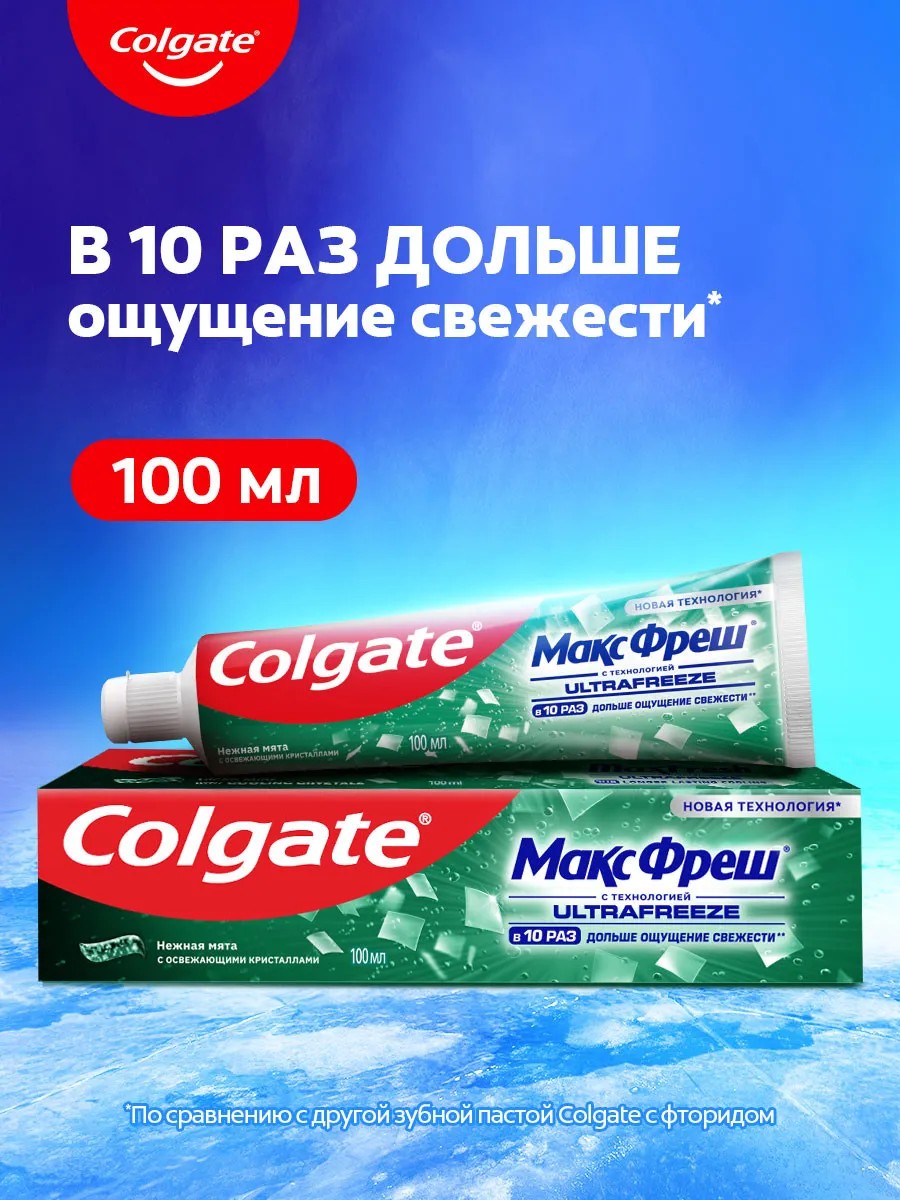 Освежает дыхание — экстраосвежающая формула с передовой технологией интенсивно охлаждает, устраняет неприятный запах и дарит ощущение невероятной свежести. В 10 раз дольше ощущение свежести по сравнению с другими зубными пастами Колгейт с фторидом.