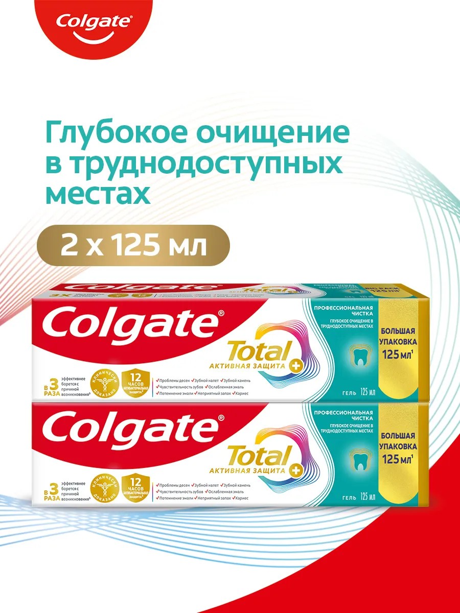 Colgate Зубная паста Total 12 Профессиональная чистка гель 125мл 2шт