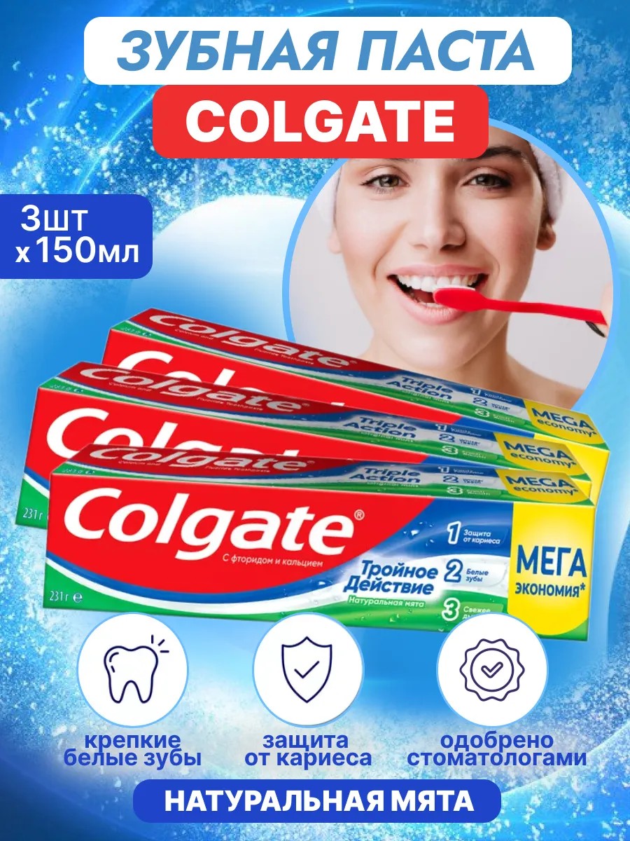Colgate Зубная паста Тройное действие 150 мл 3 шт