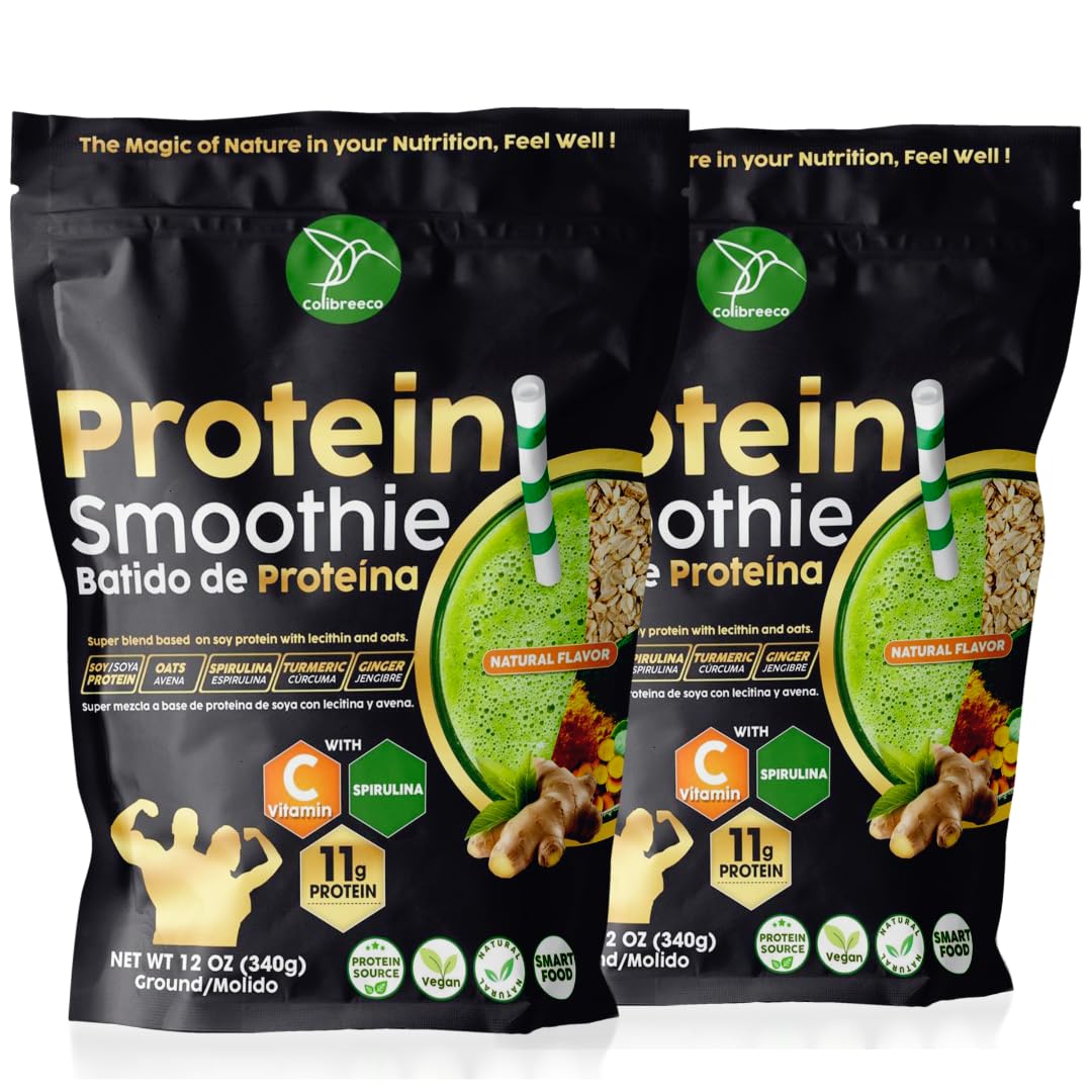 The simplest and most delicious way to take care of your body: This Protein Smoothie is packed with vitamins, minerals, and superfoods that mix easily in seconds, offering you a quick, convenient, and nutritious way to start your mornings on the right foot. Complete and organic nutrition in every glass: Enjoy a smoothie that is not only delicious but made with certified organic and non-GMO ingredients, carefully selected to provide you with comprehensive nutrition that supports your physical and mental well-being. Increase your energy and improve digestion: This protein smoothie supports your digestive health, enhances nutrient absorption, and provides you with the energy needed to tackle the day with strength and clarity. Naturally boost your defenses: The combination of vitamin C, antioxidants, and superfoods in this smoothie strengthens your immune system, helping protect you from illnesses while you enjoy a refreshing and delicious flavor. Transform your health with every sip: Our Colibreeco Protein Smoothie combines spirulina, turmeric, and ginger to offer you a powerful blend of superfoods that will help improve your daily well-being, giving you natural energy and vitality.