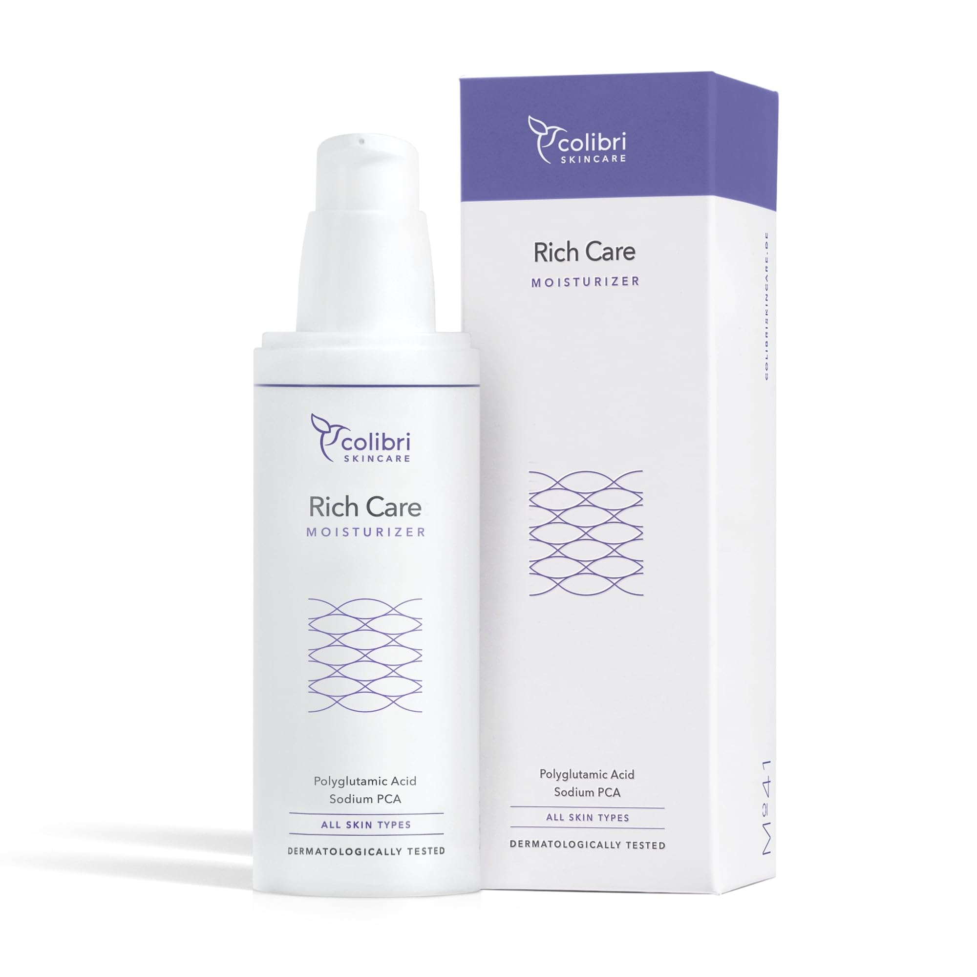 ✓ PERFECT WITH OTHER RICH PRODUCTS: Combine the Rich Care Moisturizer with the colibri skincare Rich Night Moisturizer for well-groomed and well-hydrated facial skin, and say goodbye to dry skin. ✓ SPECIALLY FOR DRY AND IRRITATED SKIN: The special formulation of the face cream has been adapted to the needs of dry, irritated and dehydrated skin. Our Rich Care day cream soothes and reduces skin irritations. ✓ 0.1 POLYGLUTAMIC ACID PROVIDES INTENSE HYDRATION: The face day cream protects dry facial skin from dehydration and regulates moisture, soothes and intensively cares for the skin. ✓ WITH NOURISHING OMEGA ACIDS, SQUALANE BETAINE: The highly effective ingredients of the moisturizer with water-binding properties strengthen the skin barrier and prevent excessive water loss and skin irritation. ✓ HYDRATION AND RADIANT SKIN: The day cream for dry skin ensures long-lasting hydration and a pleasant skin feeling. Ideal for daily use as facial care.✓ PARFAIT AVEC LES AUTRES PRODUITS RICH: Combinez le Rich Care Moisturizer avec le colibri skincare Rich Night Moisturizer pour une peau du visage bien soignée et bien hydratée, et dites adieu à la peau sèche. ✓ SPÉCIALEMENT POUR PEAU SÈCHE ET IRRITÉE: La formulation spéciale du crème visage a été adaptée aux besoins de la peau sèche, irritée et déshydratée. Notre crème de jour Rich Care apaise et réduit les irritations cutanées. ✓ 0,1 D'ACIDE POLYGLUTAMIQUE OFFRE UNE HYDRATATION INTENSE: Le creme de jour visage protège la peau sèche du visage contre la déshydratation et régule l'humidité, apaise et soigne intensivement la peau. ✓ AVEC DES ACIDES OMEGA NOURRISSANTS, SQUALANE BETAINE: Les ingrédients hautement efficaces du creme hydratante aux propriétés liantes d'eau renforcent la barrière cutanée et préviennent la perte d'eau excessive et les irritations cutanées. ✓ HYDRATATION ET PEAU RAYONNANTE: La creme de jour pour peau sèche assure une hydratation durable et une sensation de peau agréable. Idéale pour une utilisation quotidienne comme soins pour le visage.
