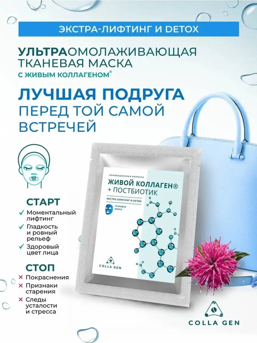Новое WOW-средство для мгновенного лифтинга! Теперь все свойства ЖИВОГО КОЛЛАГЕНА упакованы в тканевую маску! Она содержит мощную концентрацию эффективных компонентов для того, чтобы кожа сияла молодостью, здоровьем и красотой!