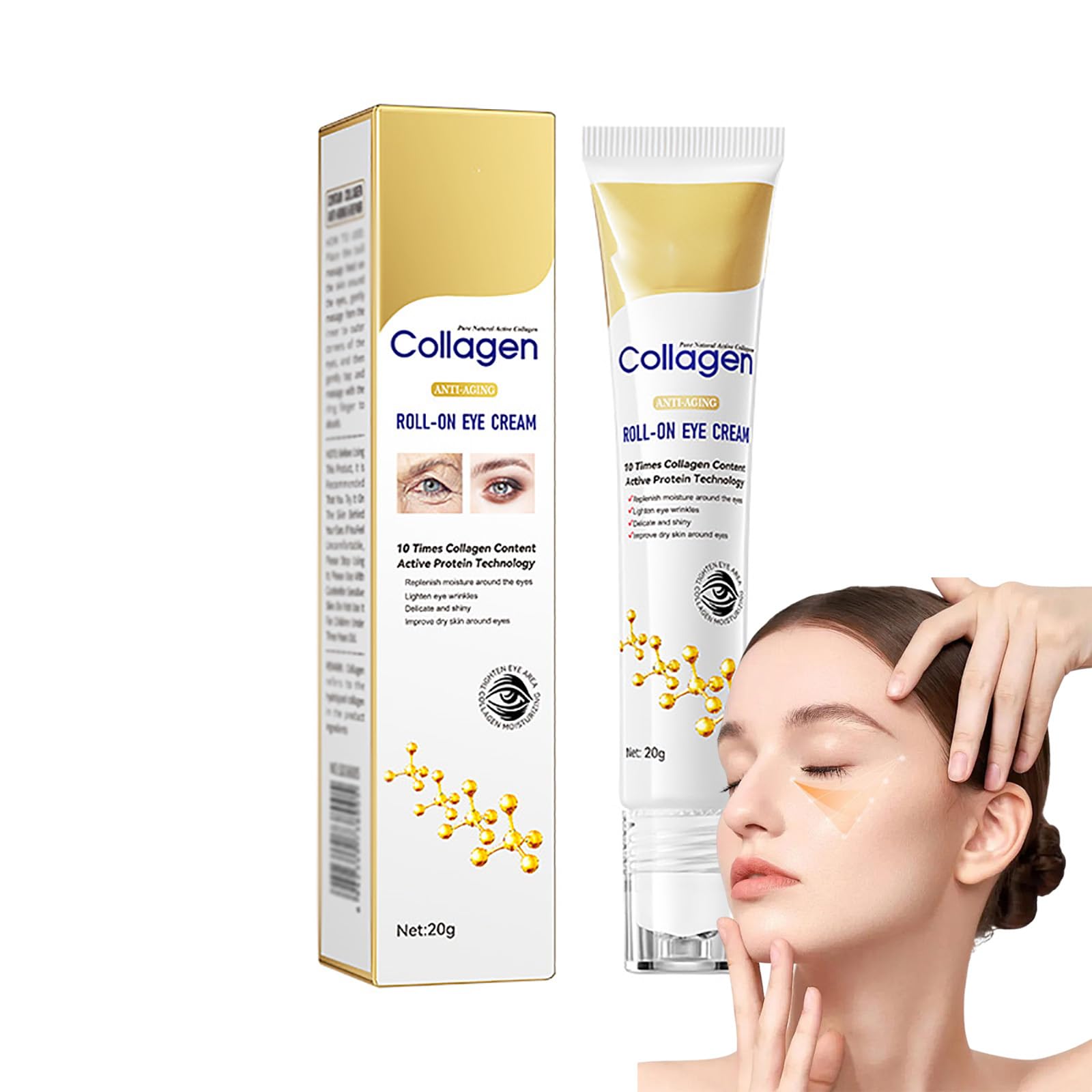 Name:Collagen anti-aging roll-on eye cream Net: 20g Main ingredients: Allantoin,hydrolyzed collagen,niacinamide,sodium hyaluronate