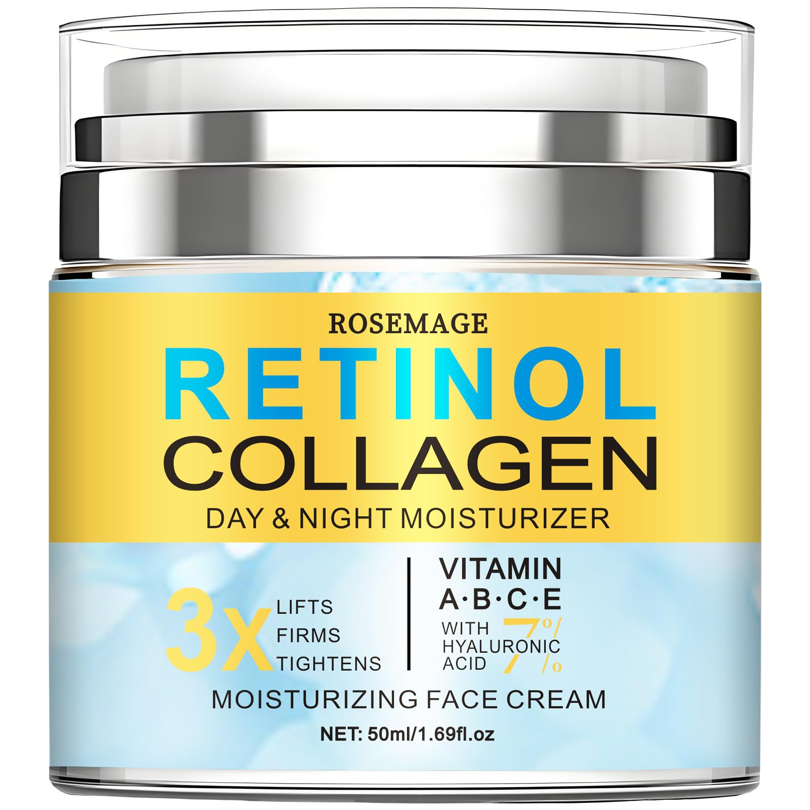 Collagen Face Cream with Retinol Hyaluronic Acid for Day Night Moisturizing Anti-aging Properties 1.69 Fl Oz