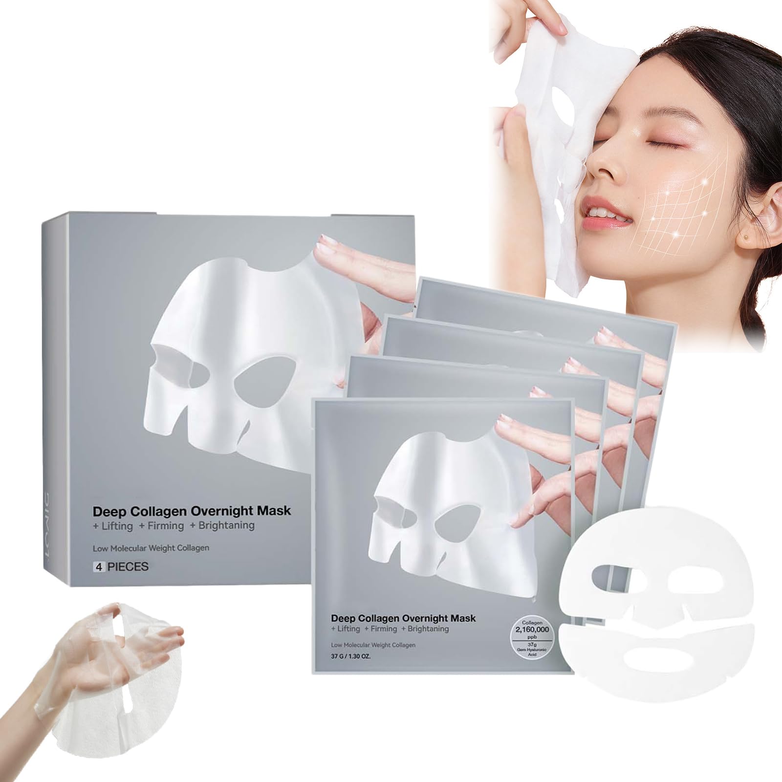 Collagen Face Mask Deep Collagen Anti Wrinkle Lifting Mask, Facial Hydrogel Masks, Collagen Overnight Mask, Helps Reduce Fine Lines & Wrinkles, Lifting, Firming, Moisturizing - 37gx4ea (1box)