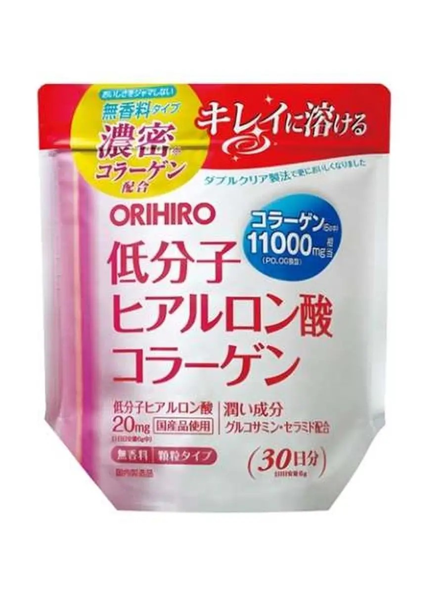 A new formula from Orihiro, dense collagen 11,000 mg. This product contains a high collagen content, low-molecular hyaluronic acid, glucosamine, and ceramides, which support your beauty. The result will be healthy and radiant skin! Collagen ensures the elasticity and strength of cartilage, ligaments, and bones, strengthens the connective tissue of the spine, increases blood flow to muscles, and improves the condition of the skin, nails, and hair. A lack of collagen in the skin leads to wrinkles, folds, and sagging skin. Collagen helps the body's musculoskeletal system recover and relieve pain. Collagen is the main component of connective tissue in tendons, ligaments, cartilage, bones, skin, nails, and hair. Dense collagen contains 30 times more PO, OG (prolylhydroxyproline, hydroxyprolylglycine), a dipeptide unique to collagen, than regular collagen.