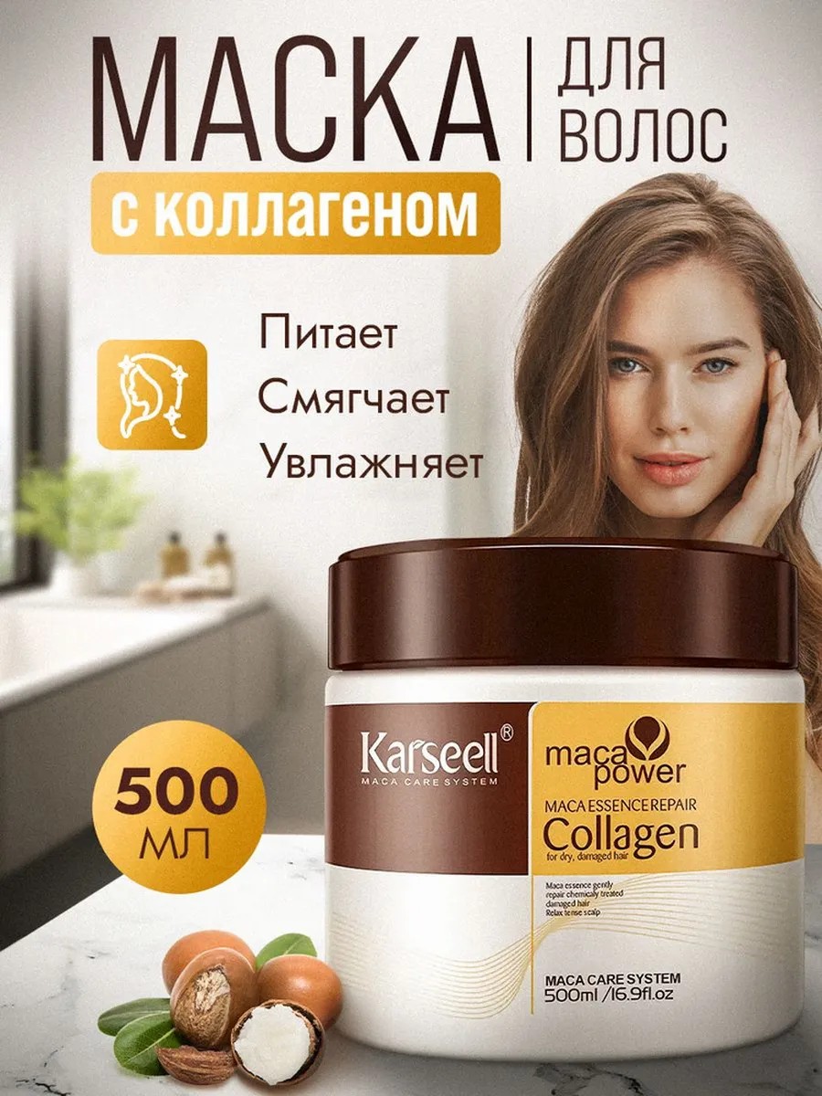 The hair mask intensively nourishes and moisturizes hair, adds shine and radiance, smoothes and fills in voids.