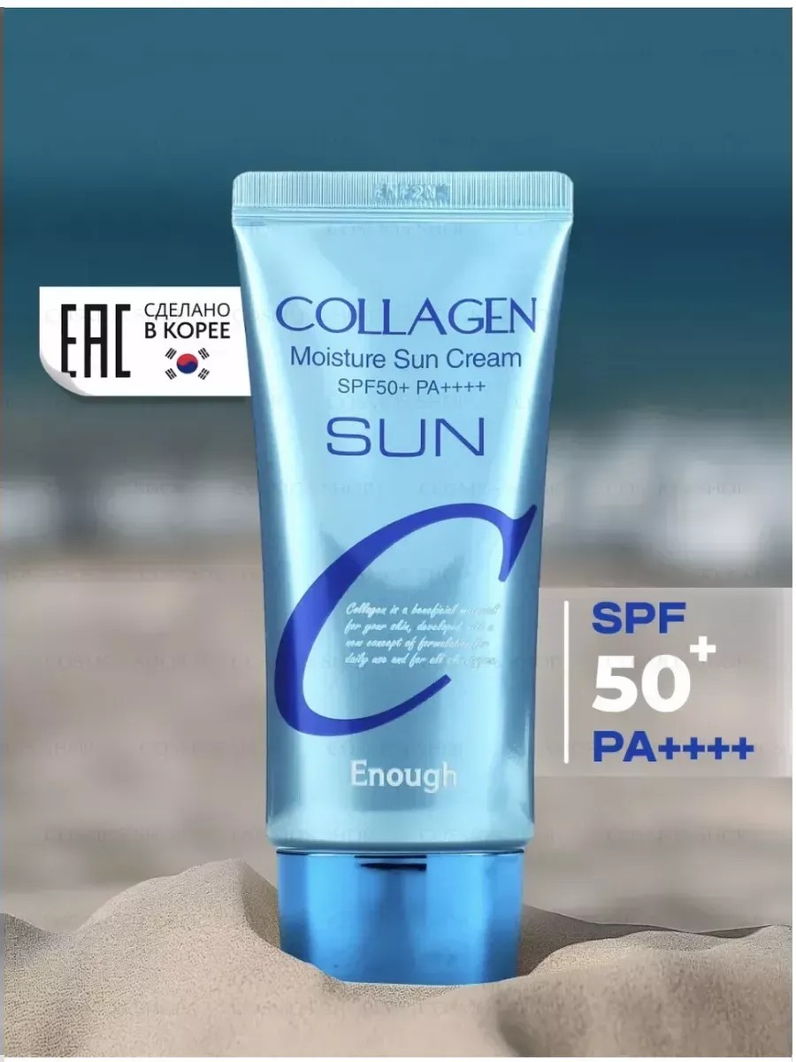 Увлажняющий солнцезащитный крем с коллагеном Enough Collagen Moisture Sun Cream SPF50+ - это не только эффективная защита кожи от ультрафиолета, но и бережный уход для лица, шеи, декольте и тела. Подходит для жирной, нормальной, комбинированной и сухой кожи. Легкая текстура легко распределяется быстро впитывается, не оставляет липкости. Имеет приятный нежный аромат, который будет оставлять на коже свежий и приятный запах. Питательный и успокаивающий крем от загара с спф 50+ защищает кожу от воздействия неблагоприятных факторов, стресса, от холода зимой, против солнца летом. Он также действует как антивозрастной и отлично подходит для базы под макияж. Основной действующий компонент: Гидролизованный коллаген - заполняет соединительные ткани и восстанавливает молекулярную структуру кожи, повышая ее эластичность и упругость. Уменьшает глубину морщин и предотвращает появление новых за счет лифтинг эффекта. Защитный крем SPF с коллагеном и пантенолом оказывает глубокое увлажнение и отбеливание. Отбеливающий дневной крем для лица подтягивает кожу, делает ее упругой, мягкой и ухоженной. Осветляющий санскрин помогает защитить кожу от солнечных ожогов, пигментации и признаков преждевременного старения. При ежедневном использовании косметического средства отмечается осветление пигментных пятен, улучшение состояния, смягчение проблемной кожи и интенсивная защита от УФ - лучей. При его производстве использовалась эффективная формула, оказывающая комплексное действие. Оригинальная и профессиональная уходовая корейская косметика женская для лица! Проверьте подлинность средства Корея на сайте проверки штрих-кодов.